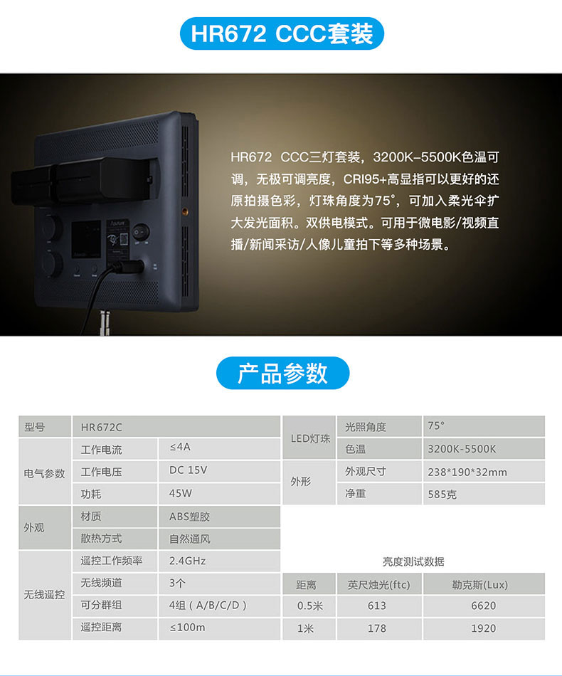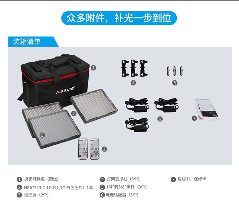 【尾货】Aputure/爱图仕 HR672CCC可调色温LED摄影补光灯套装 拍摄套装