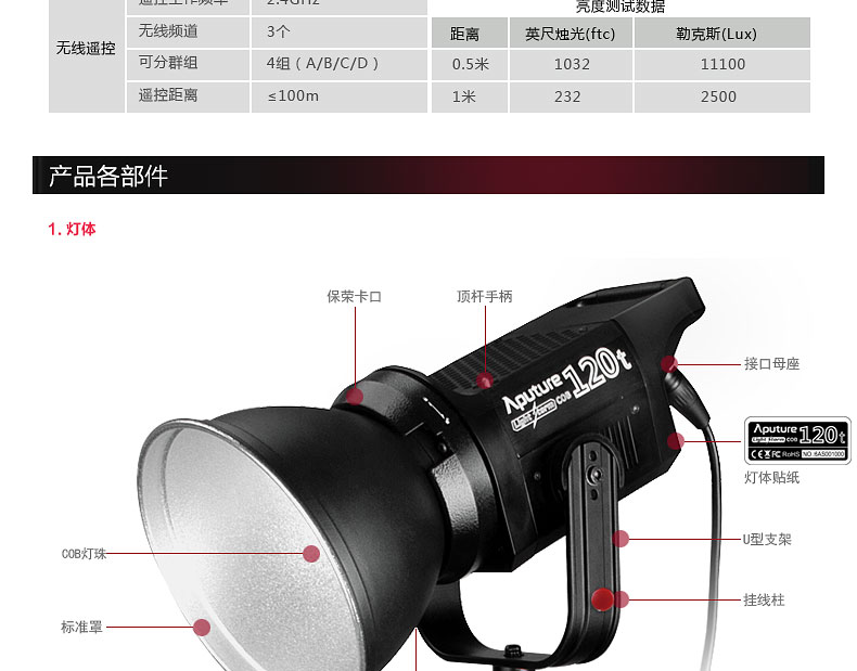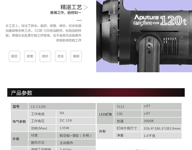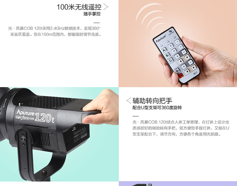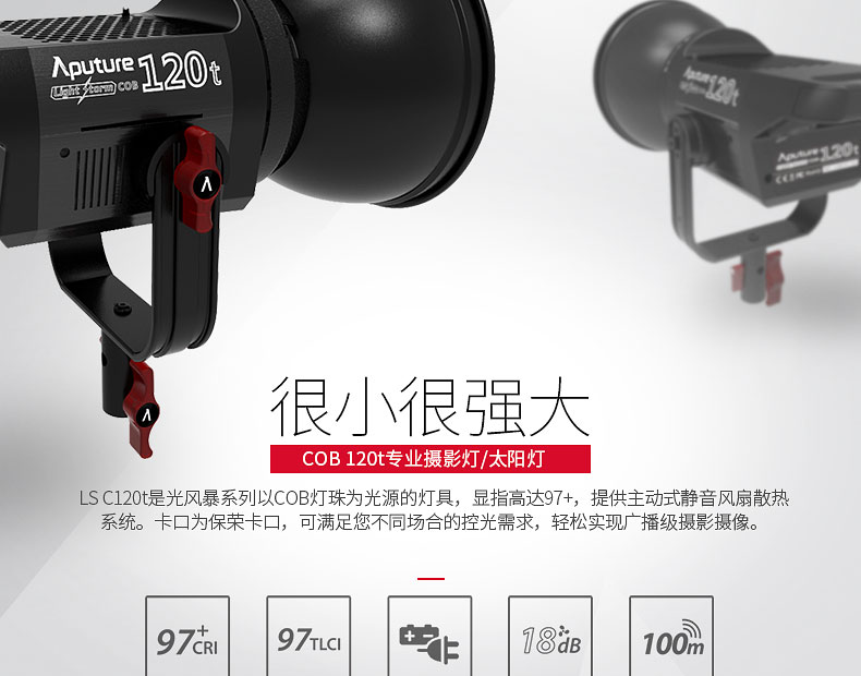 Aputure/爱图仕 光风暴120t LED外拍摄影补光常亮影视灯淘宝直播
