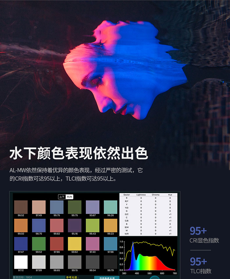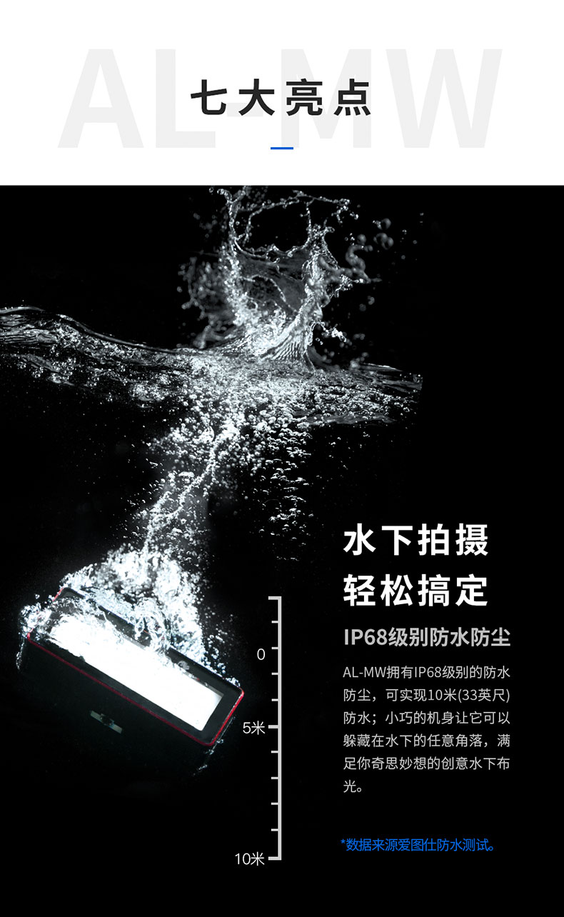 Aputure/爱图仕 AL-MW水下摄影潜水补光灯 LED常亮灯人物自拍直播