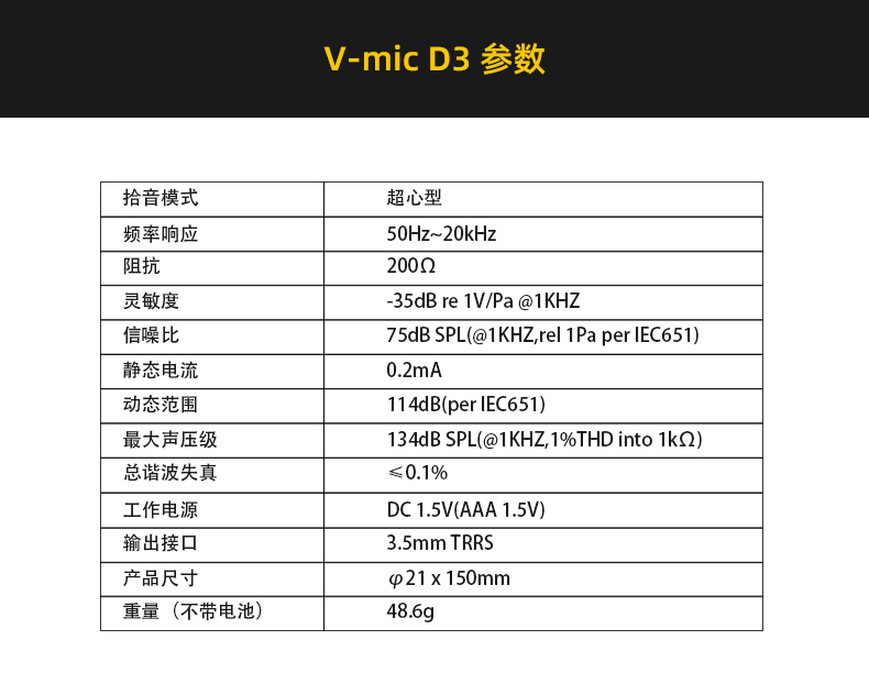 爱图仕Deity V-mic D3麦克风 手机直播吃播单反录音专业采访话筒