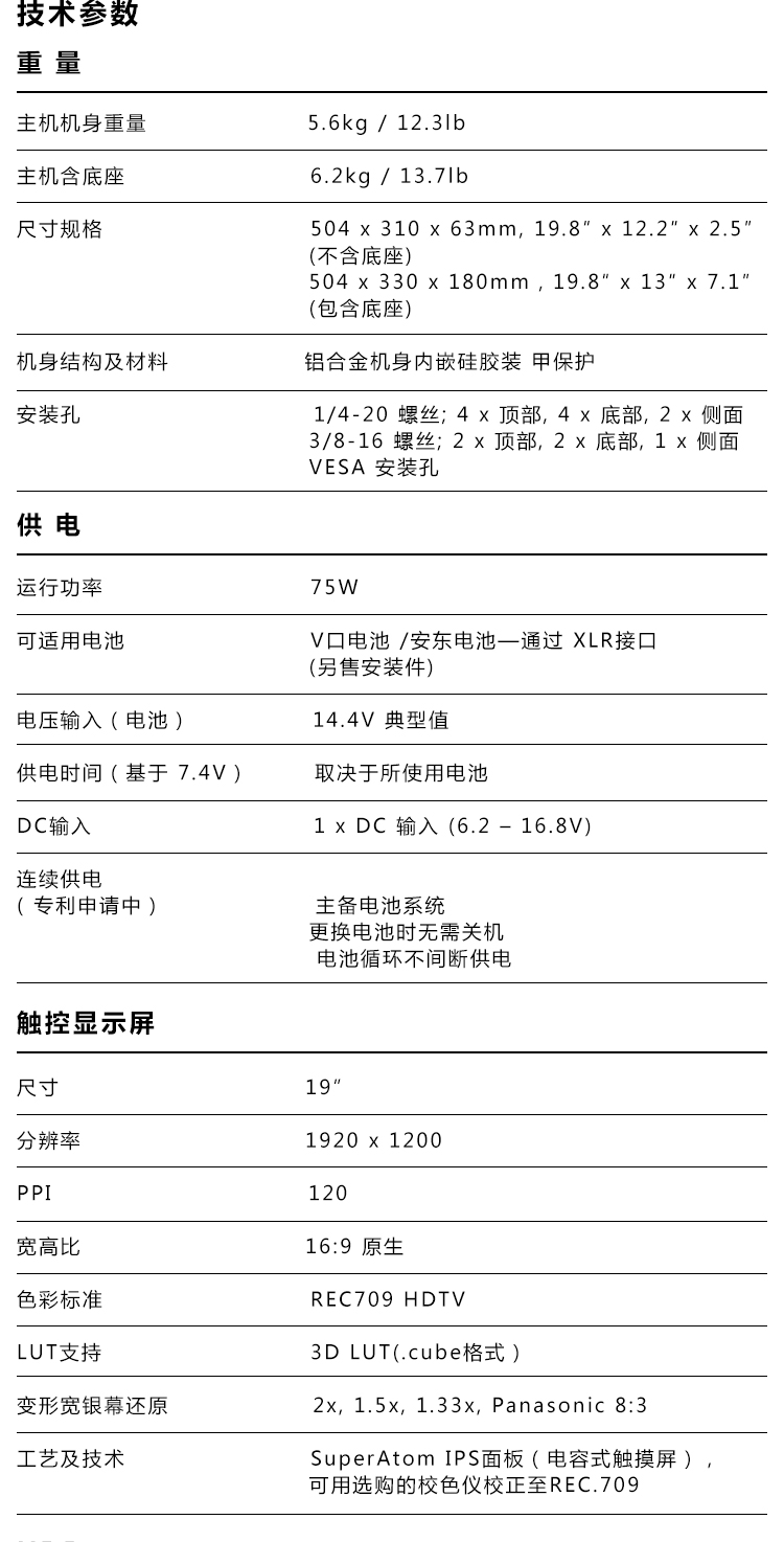 | 工艺及技术 | SuperAtom IPS面板(电容式触摸屏),可用选购的校色仪校正至REC.709 |