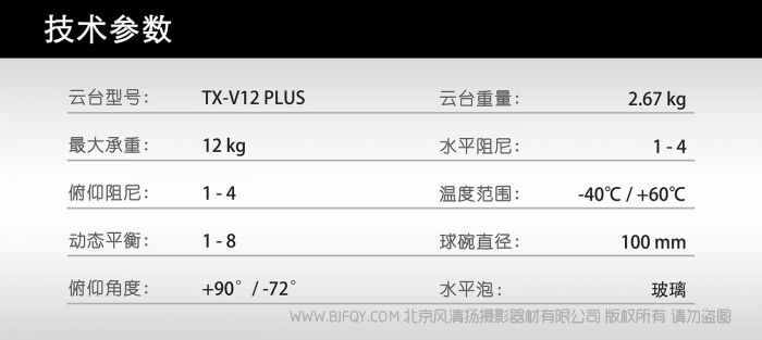 TERIS/图瑞斯TX-V12 PLUS液压云台 12KG承重 4档水平阻尼