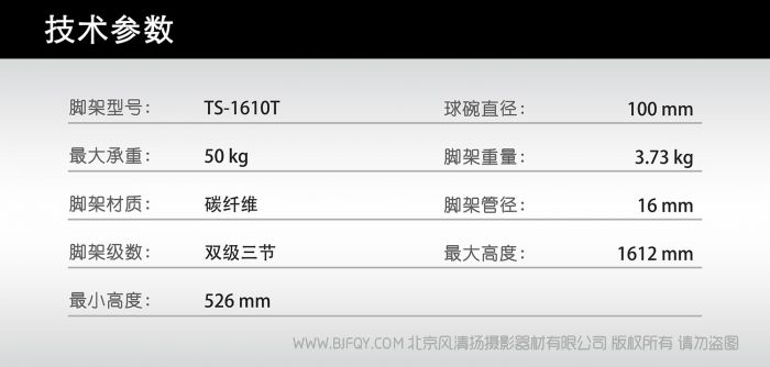 | 脚架型号 | TS-1610T | 球碗直径 | 100mm |