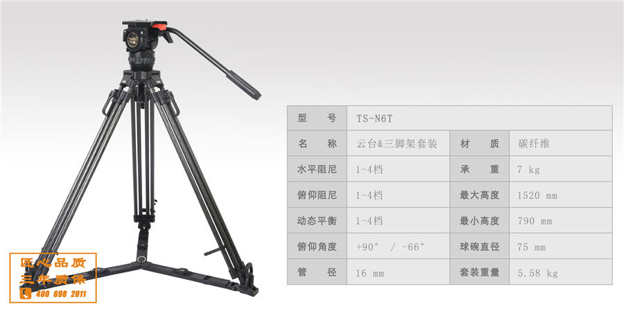 TERIS/图瑞斯TS-N6T Plus 套装 液压云台&碳纤维三脚架套装