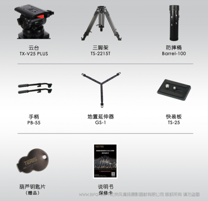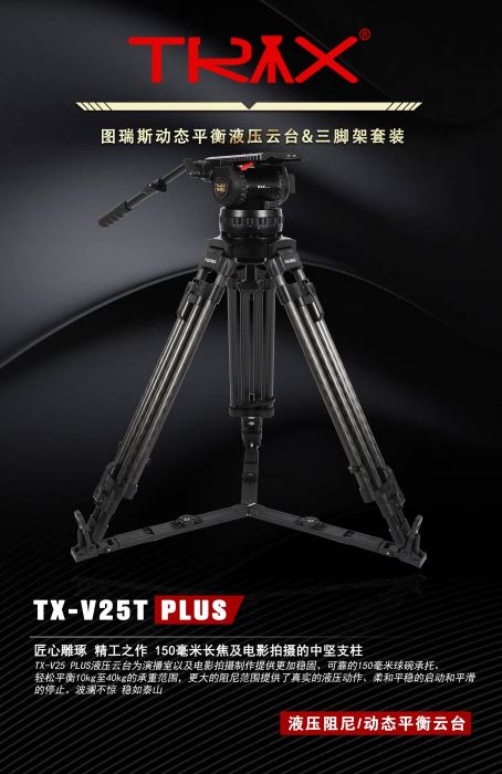 TERIS/图瑞斯TX-V25T PLUS液压云台&三脚架套装 较大承重 : 40 kg俯仰阻尼 : 1-8水平阻尼 : 1-8动态平衡 : 1-8动态平衡分档钮 : 三档
