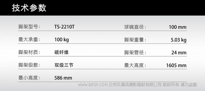 | 脚架型号 | TS-2210T | 球碗直径 | 100mm |