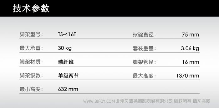 | 脚架型号 | TS-416T | 球碗直径 | 75mm |