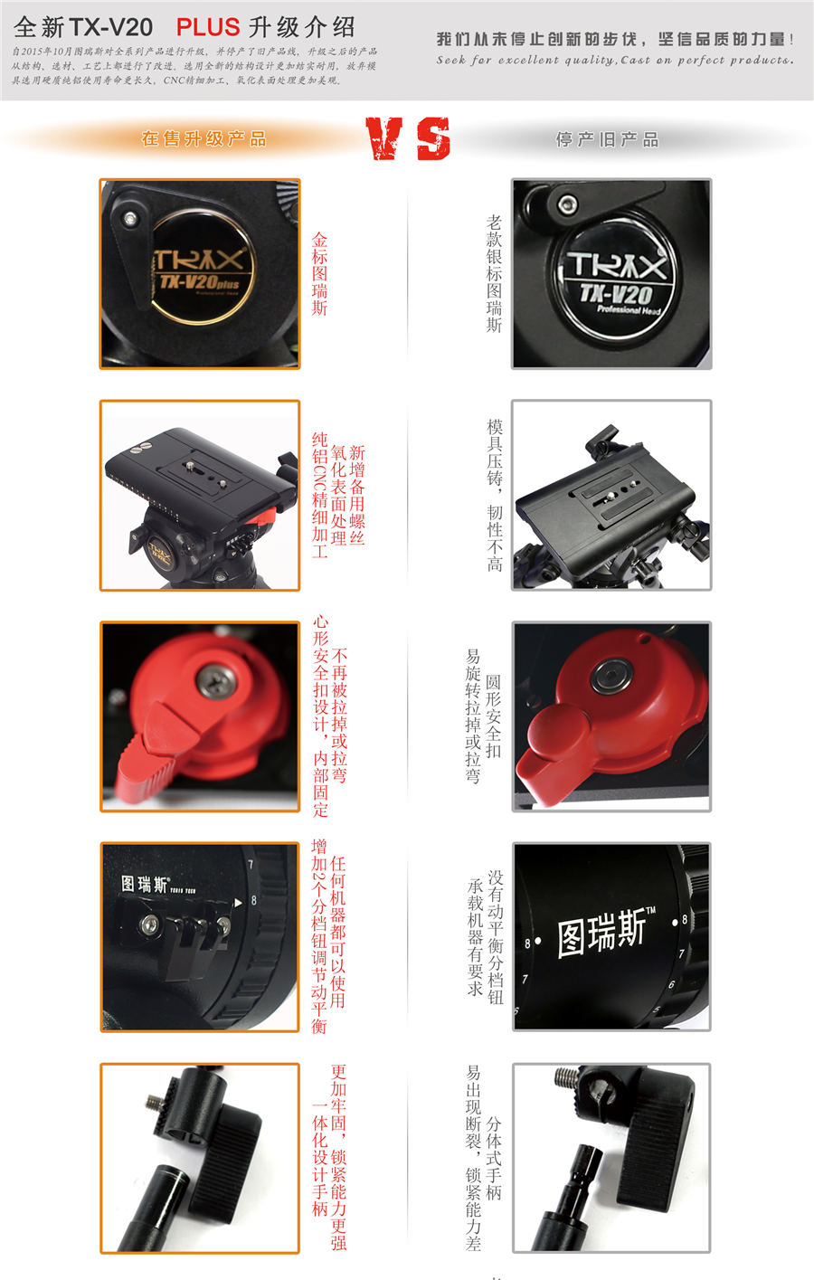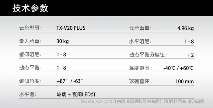 TERIS/图瑞斯TX-V20 PLUS液压云台 较大承重 : 30kg俯仰阻尼 : 1-8水平阻尼 : 1-8