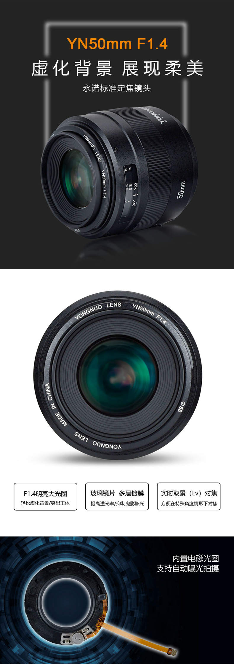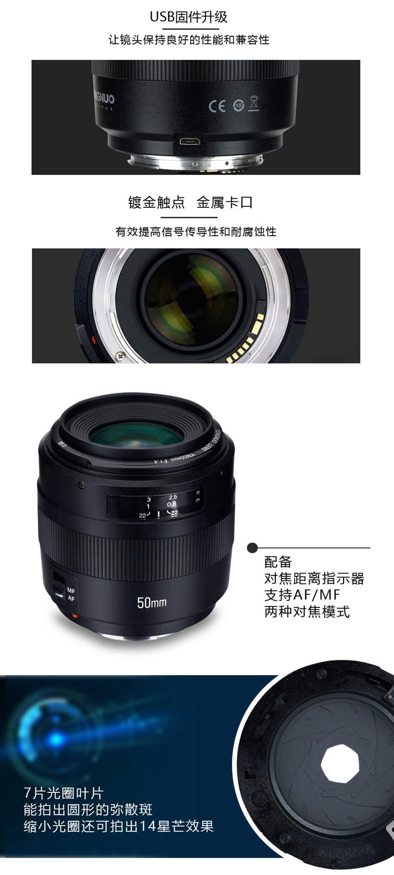永诺YN50mm F1.4标准定焦镜头大光圈全画幅自动对焦佳能尼康人像