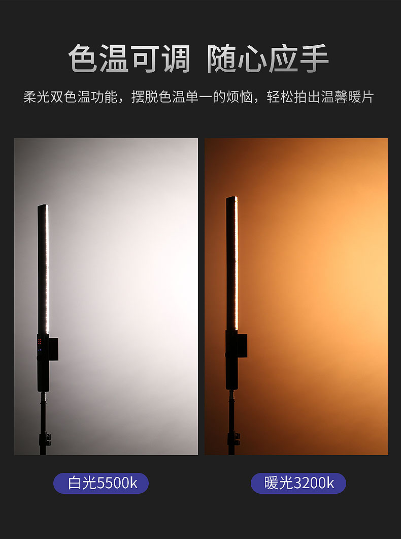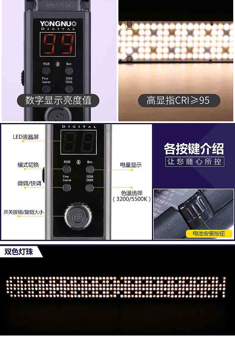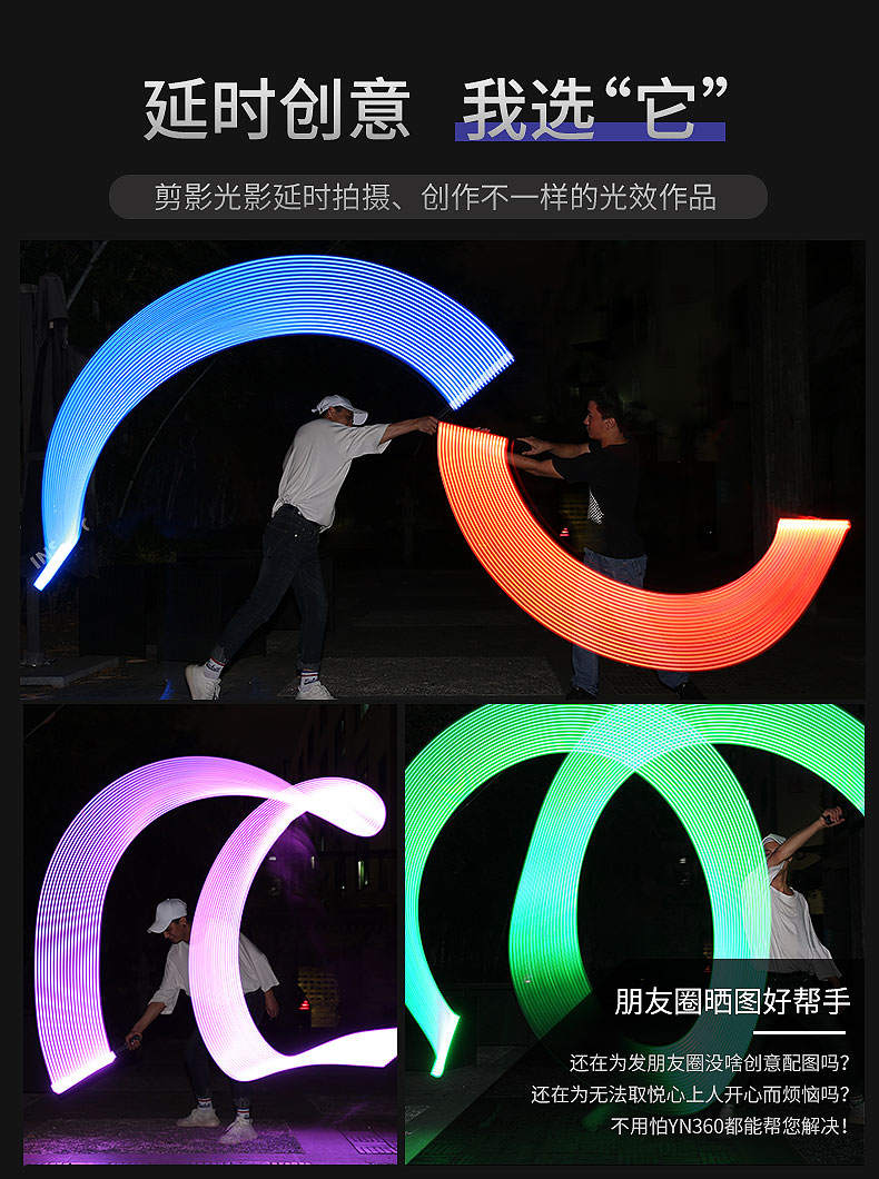 永诺YN360LED摄影灯可调色温冰灯RGB手持棒灯手机APP控制补光灯棒