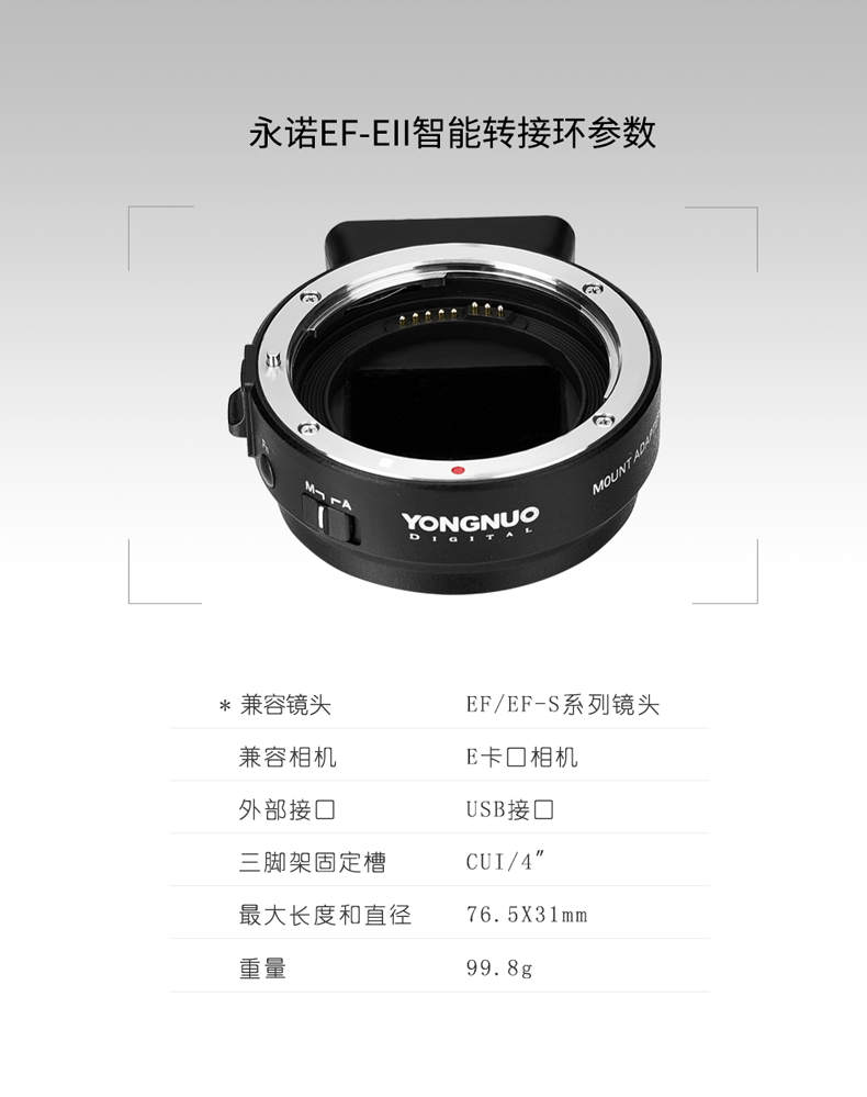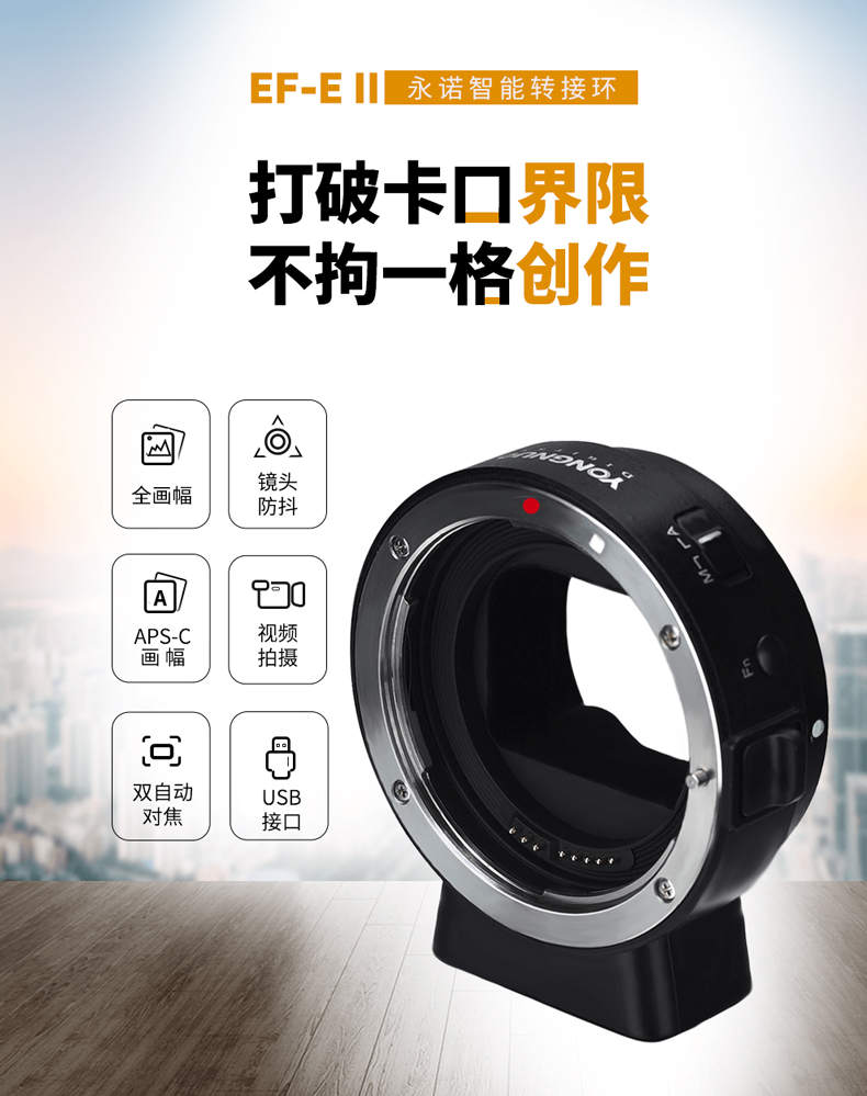 永诺E口转接环EF-E II佳能EF/EF-S镜头转索尼a6400 a7全画幅微单