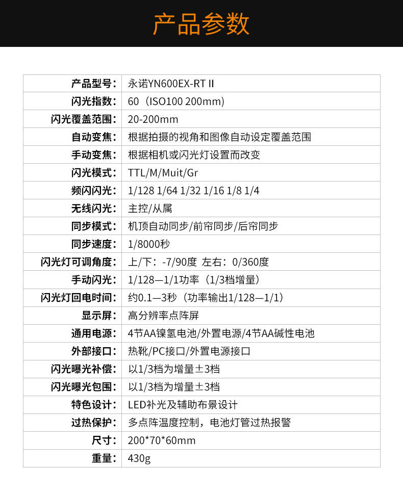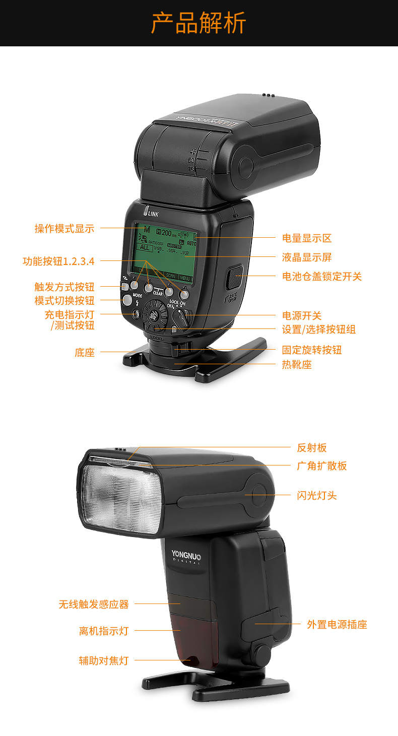 永诺YN600EX-RTII二代机顶TTL闪光灯高速同步E3-RT佳能单反热靴灯
