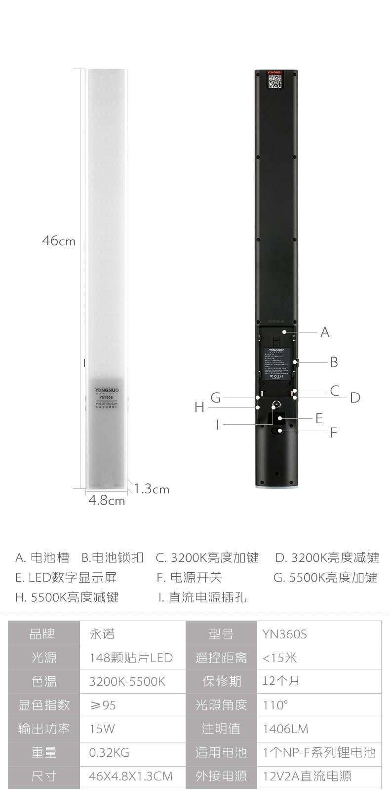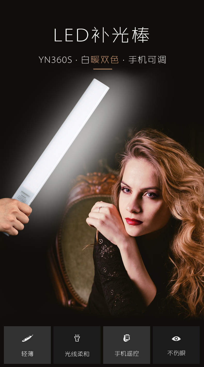 永诺YN360S手持冰灯可调色温LED摄影灯手机APP控制抖音冰灯补光灯
