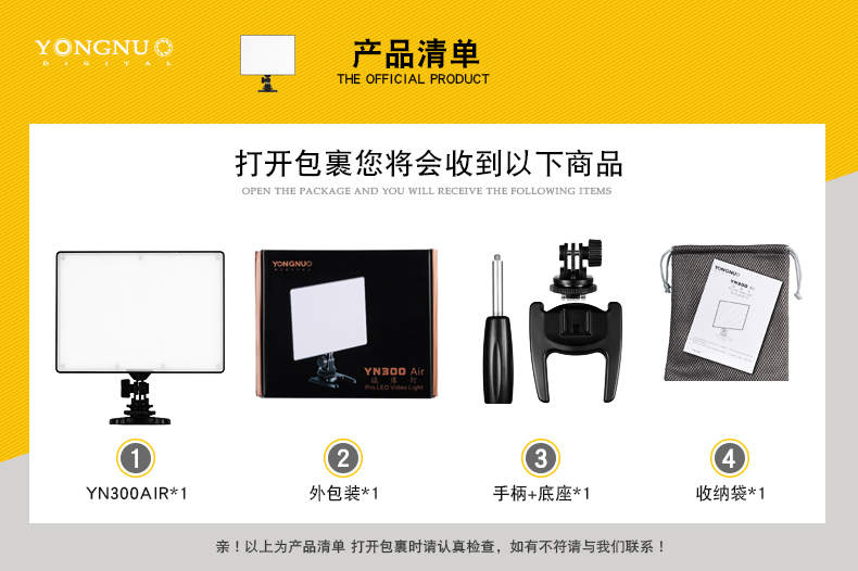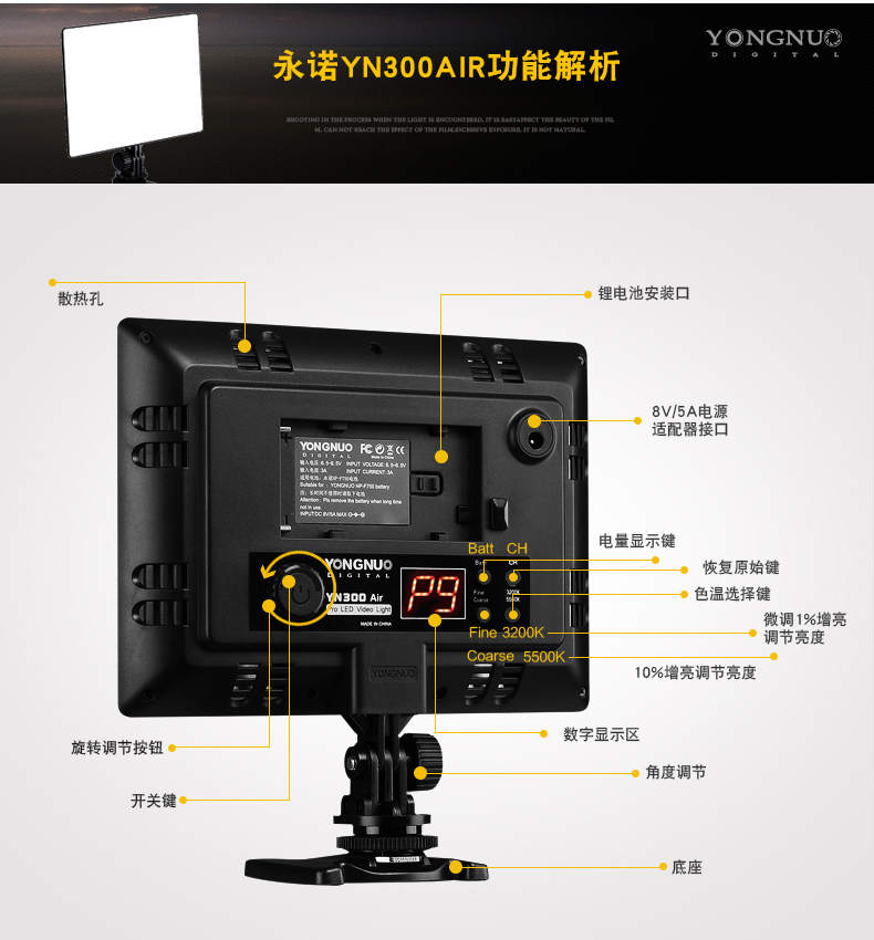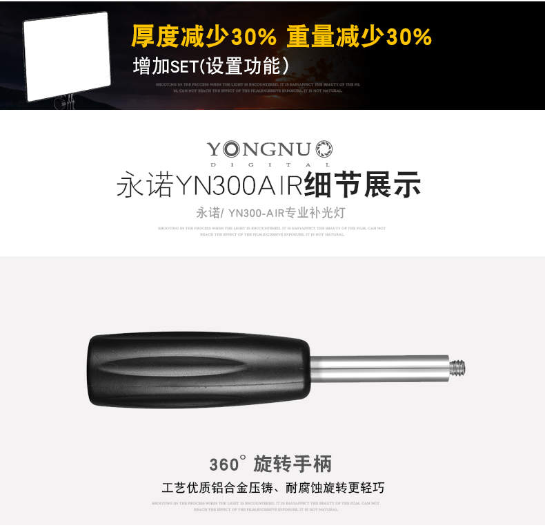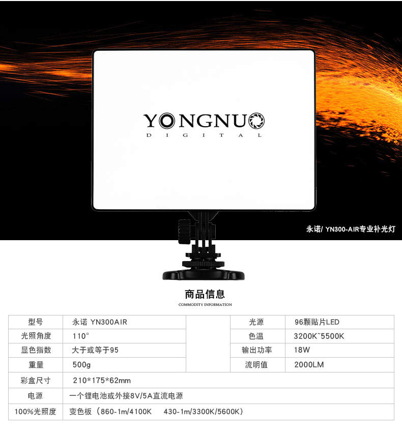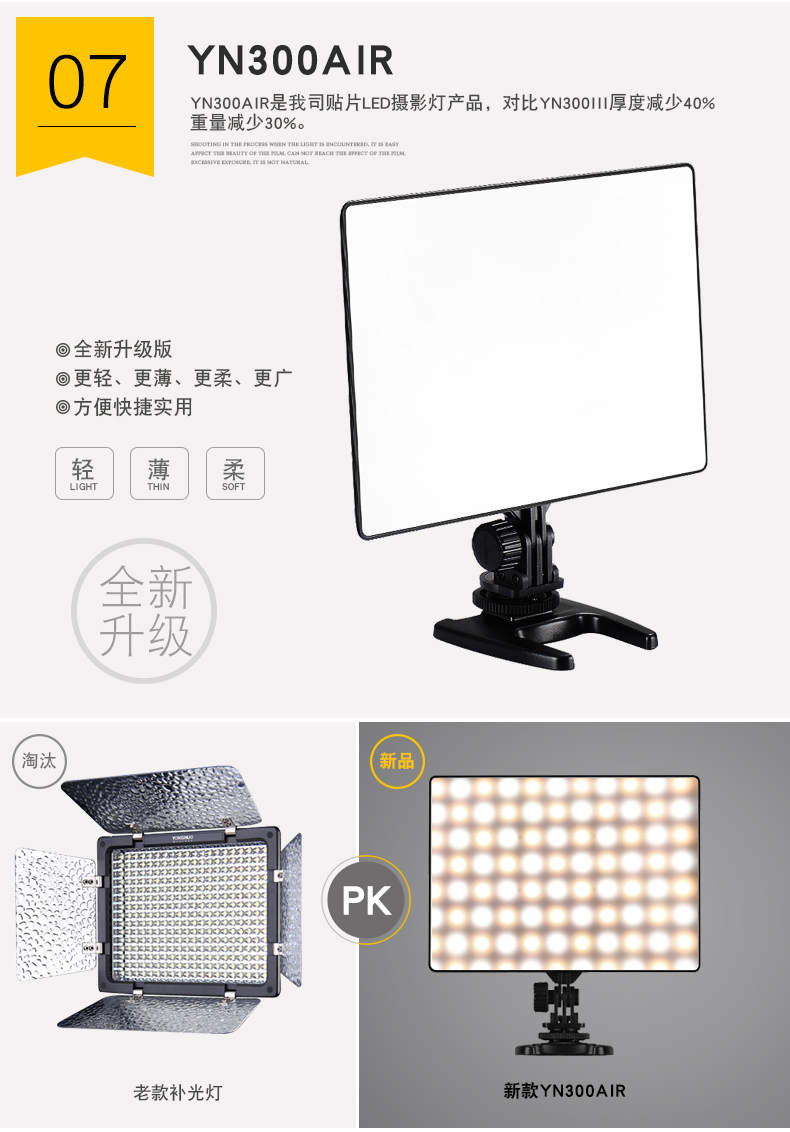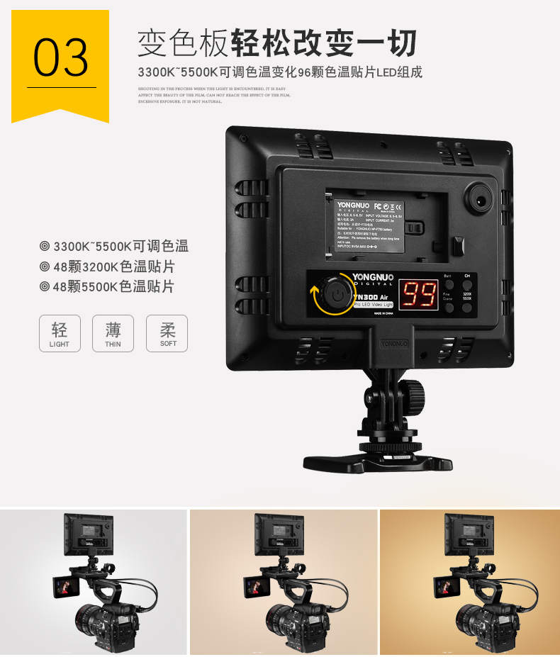 永诺YN300Air摄影灯可调双色温补光灯直播灯轻薄LED柔光灯外拍灯