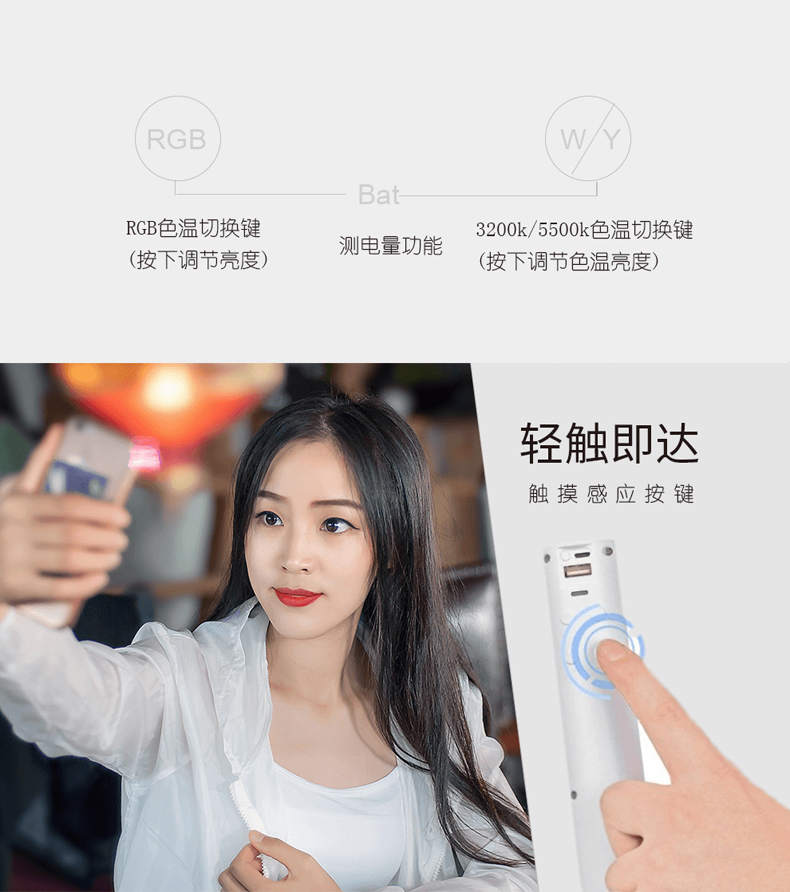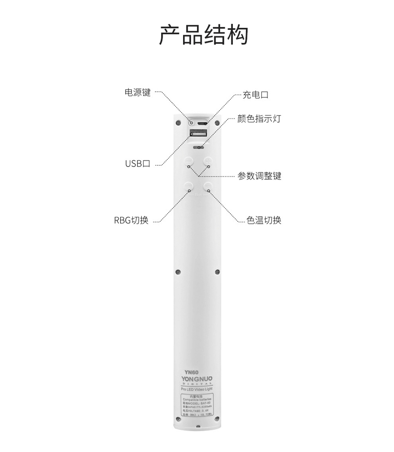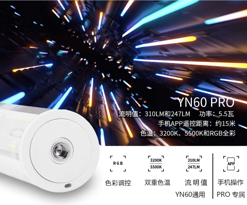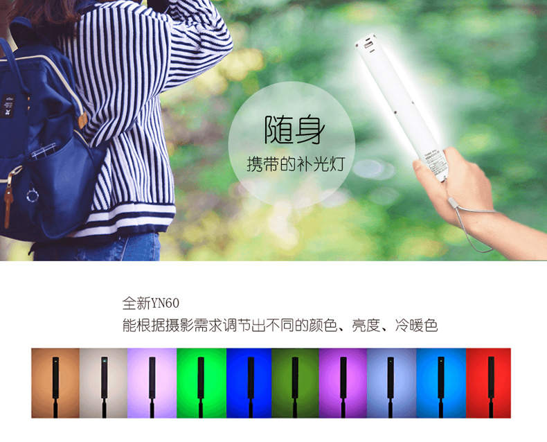 永诺YN60Pro迷你LED补光棒内置锂电池手持冰灯RGB全彩棒灯外拍灯