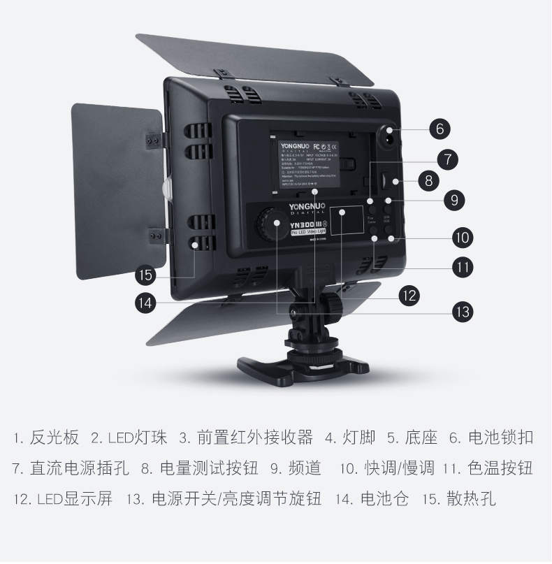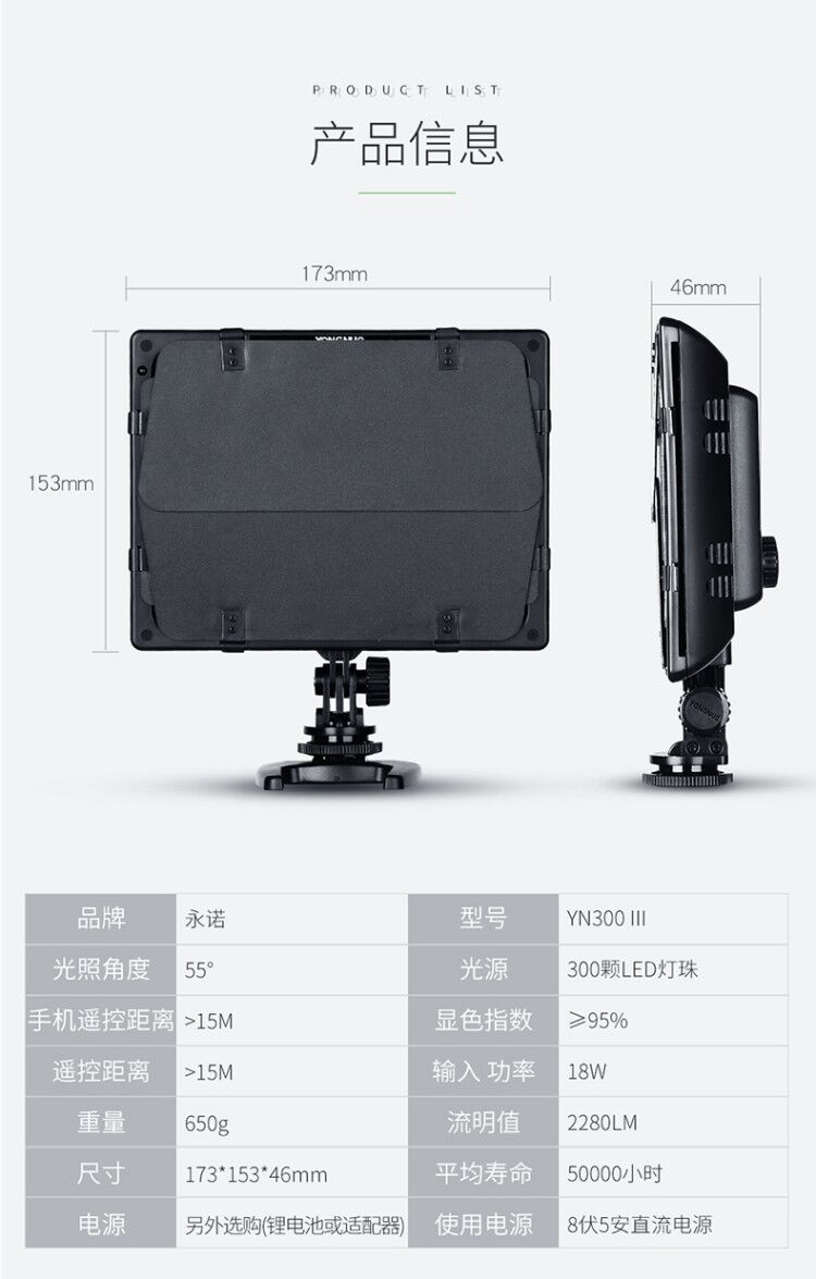 永诺YN300III LED摄影灯可调色温外拍灯手机APP控制补光灯抖音灯