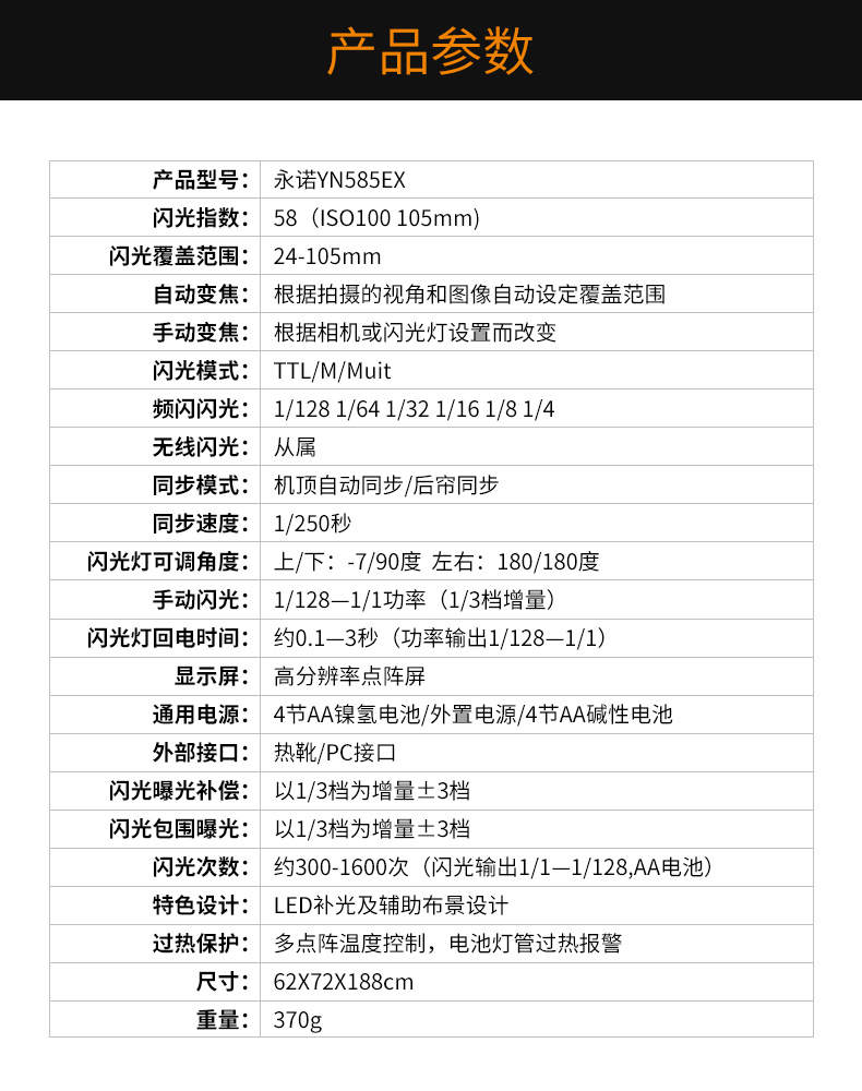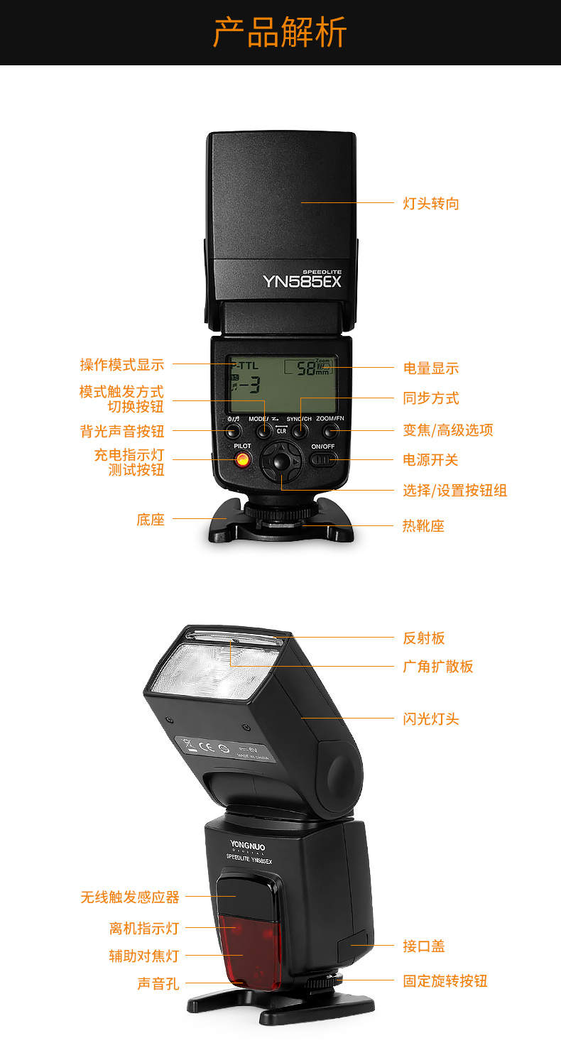 永诺YN585EX机顶闪光灯K5 K50 K-1 K3 K30宾得单反相机TTL热靴灯