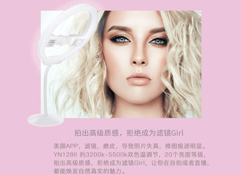 永诺LED美颜补光灯YN128II视频直播环形灯可调色温摄影灯抖音灯