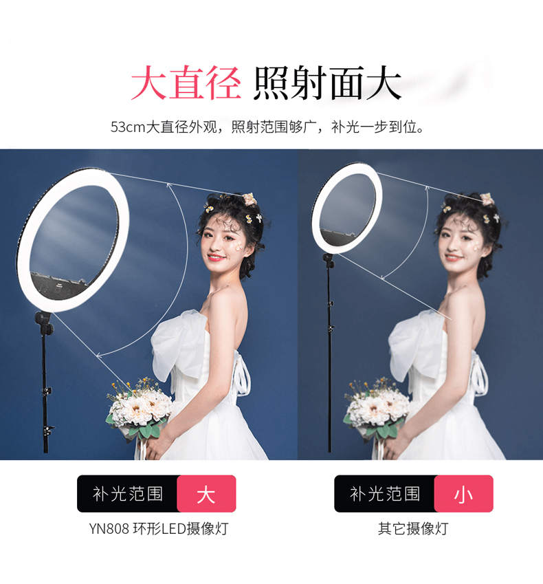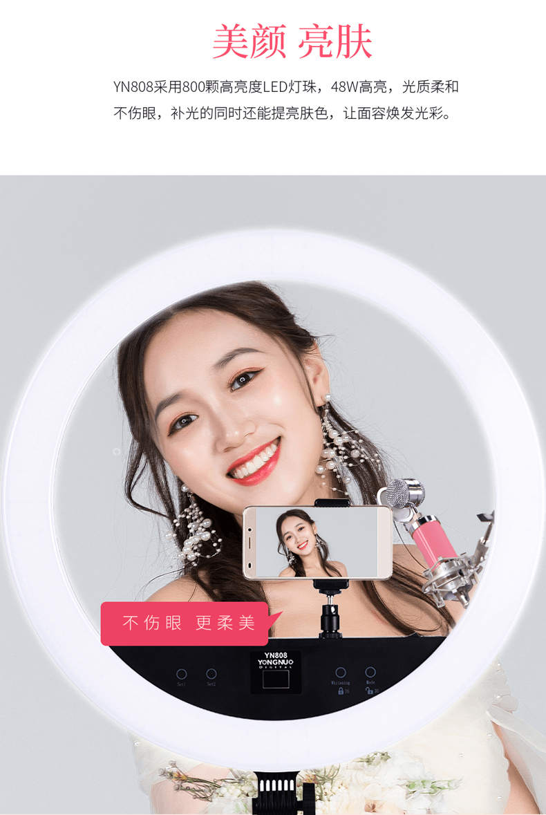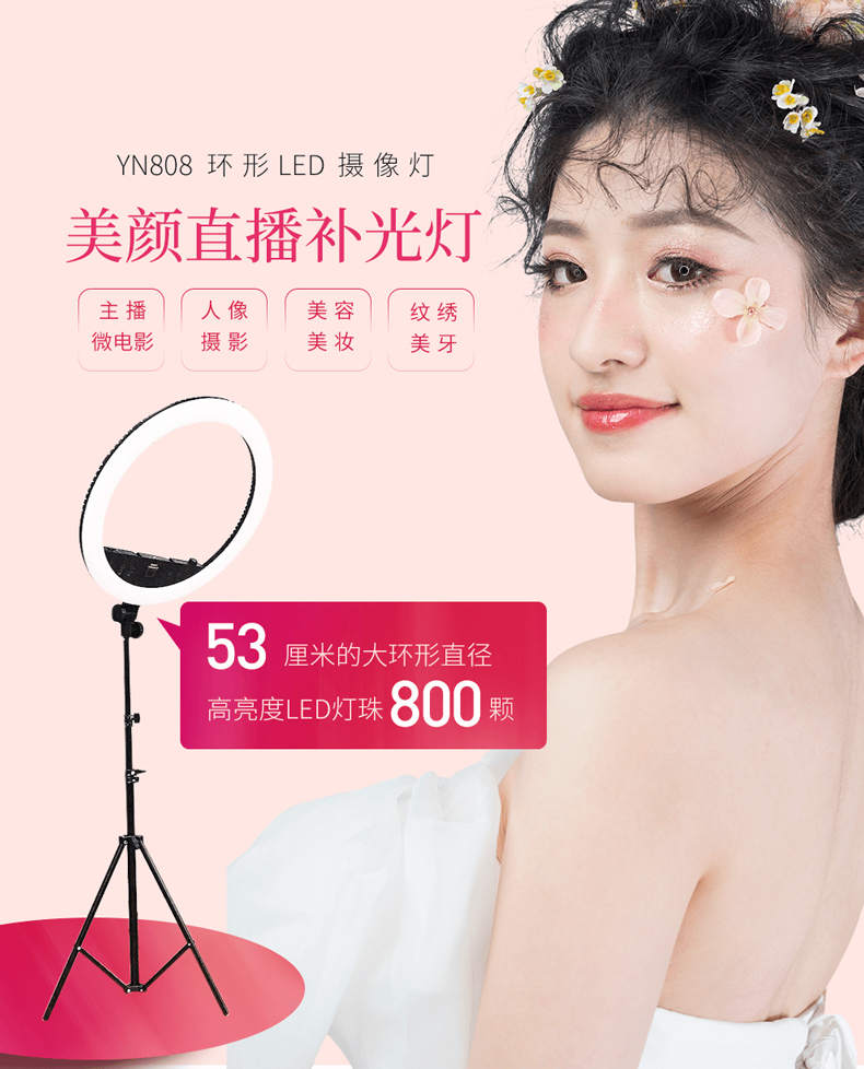 永诺YN808环形LED摄影灯美颜直播补光灯微电影抖音灯网红影室灯