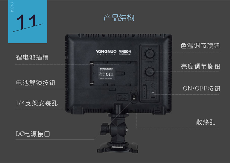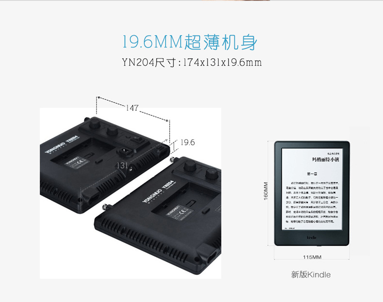 永诺贴片LED摄影灯YN204可调双色温补光灯可组装拼接影室灯摄像灯