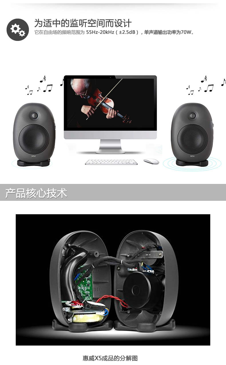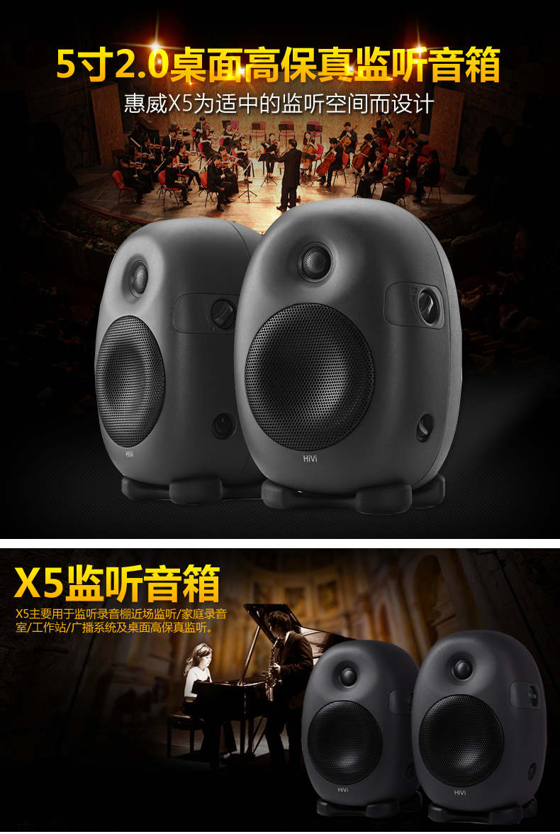 Hivi/惠威 X5 多媒体监听音箱有源2.0电脑客厅电视HiFi书架音响