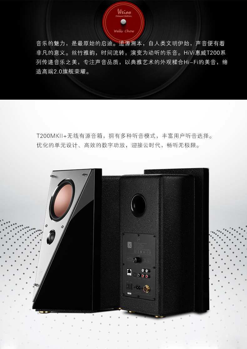 Hivi/惠威 T200MKII+无线WiFi蓝牙HiFi监听音箱手机PC/TV音响