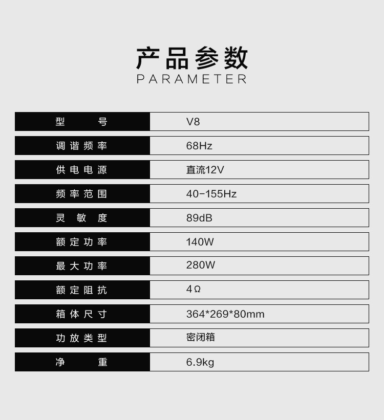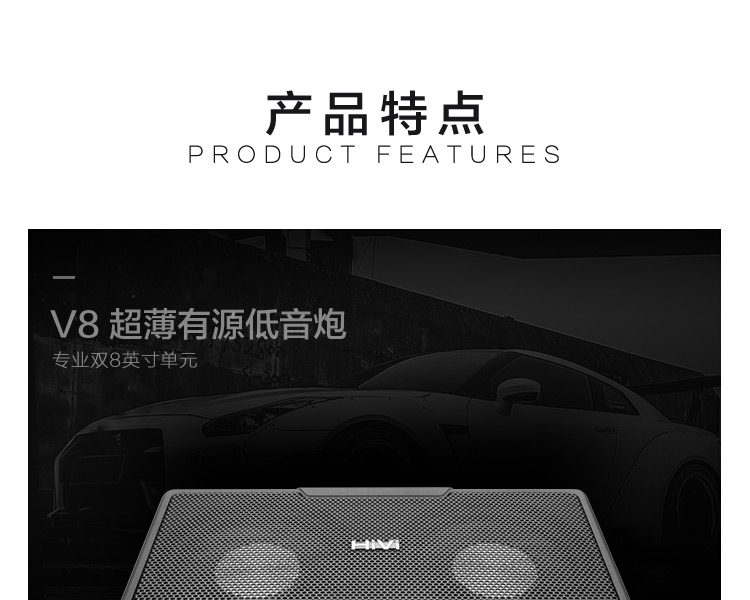 HiVi惠威V8双8英寸无损改装车载有源超薄低音炮喇叭汽车音响