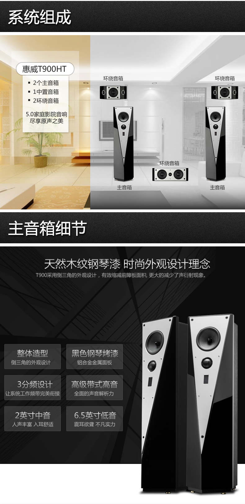 Hivi/惠威 T900 家庭影院套装5.0HiFi音响环绕客厅电视落地音箱