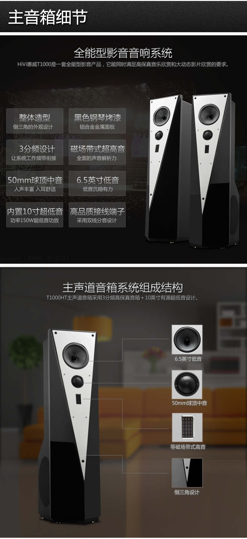 Hivi/惠威 T1000HT 5.2家庭影院音响hifi客厅电视落地音箱木质
