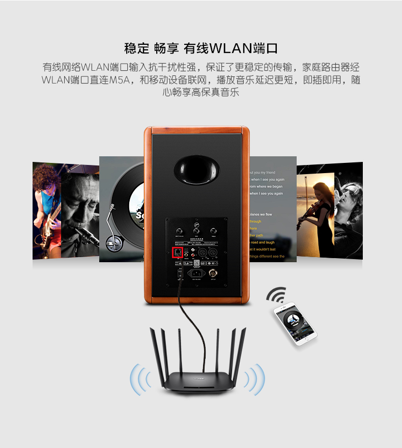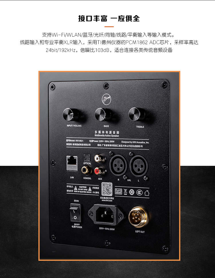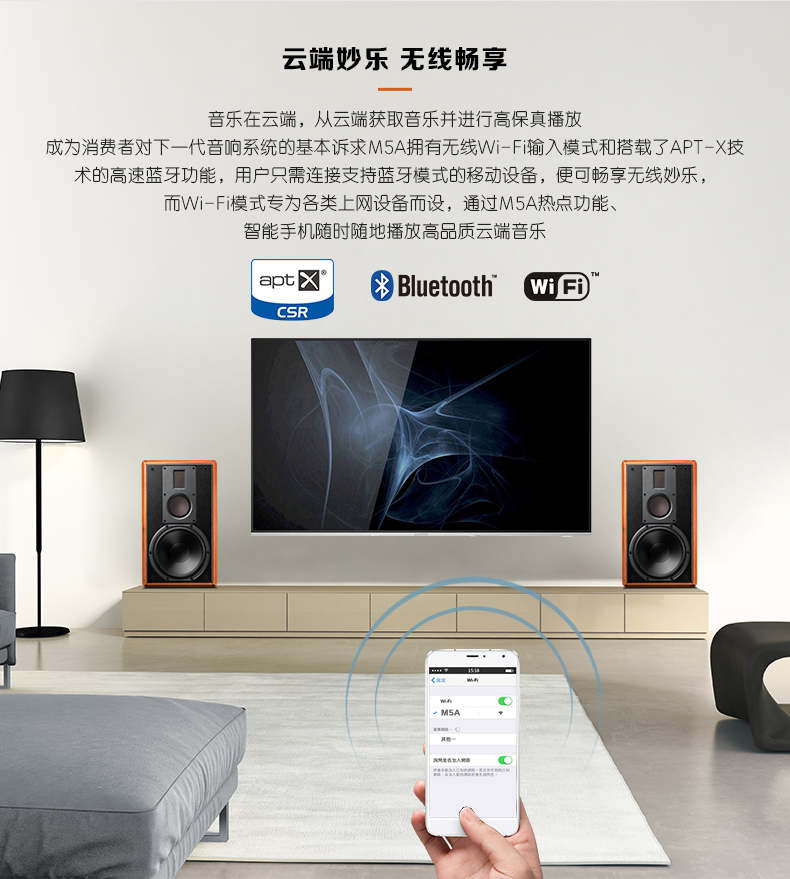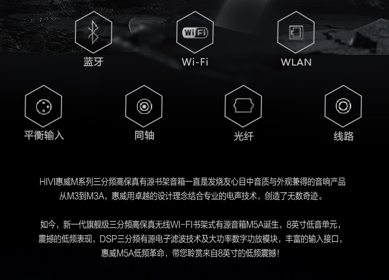 【新上市】Hivi/惠威M5A三分频高保真无线WiFi书架式有源音箱hifi