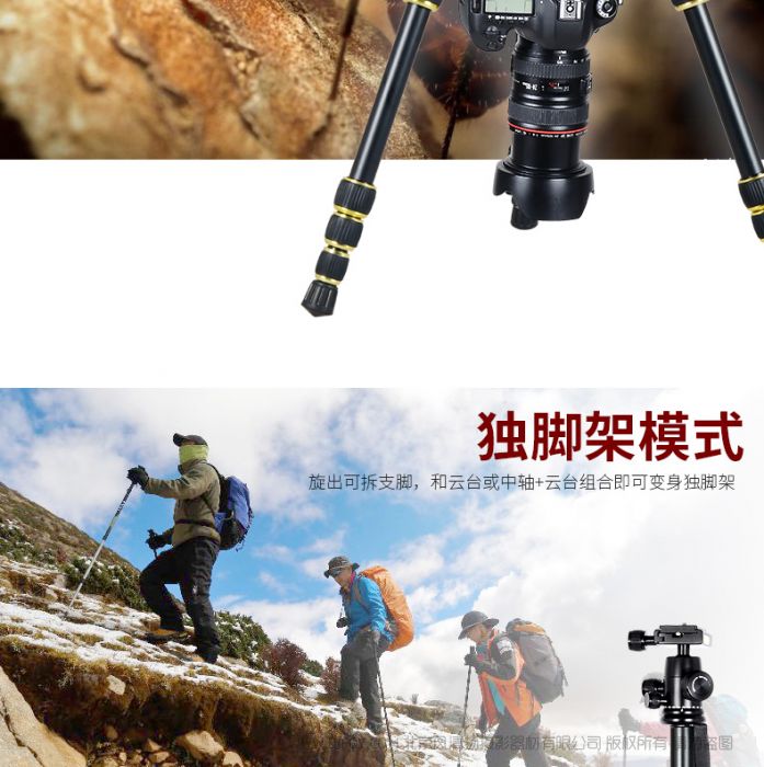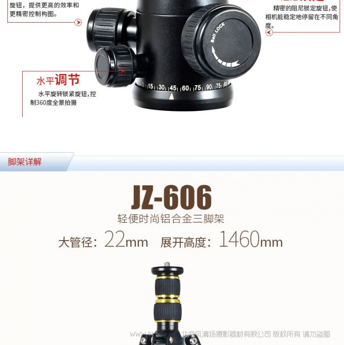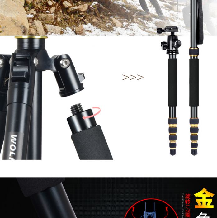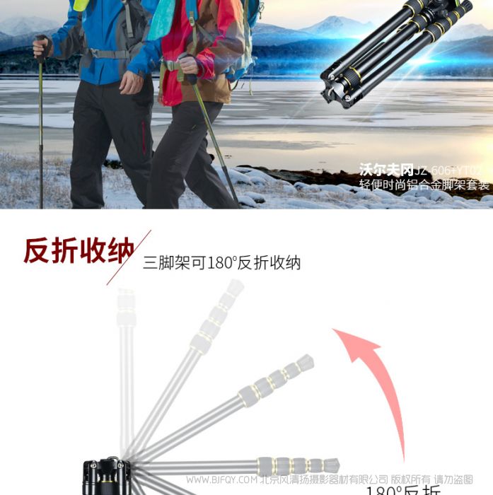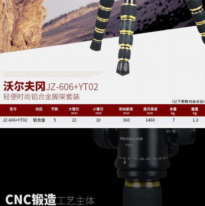 沃尔夫冈 wolfgang JZ-606+YT02 铝合金 三脚架 适用于 索尼 佳能摄像机 等产品 单反相机 专微