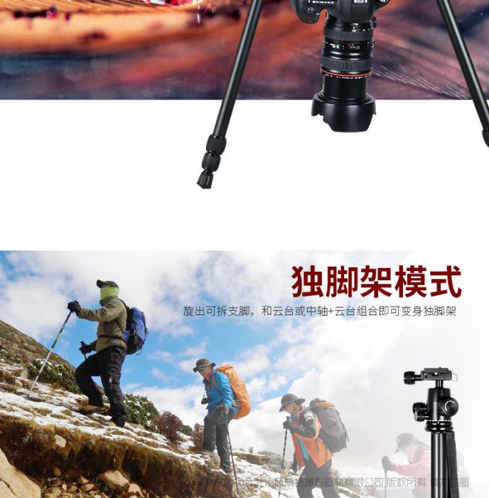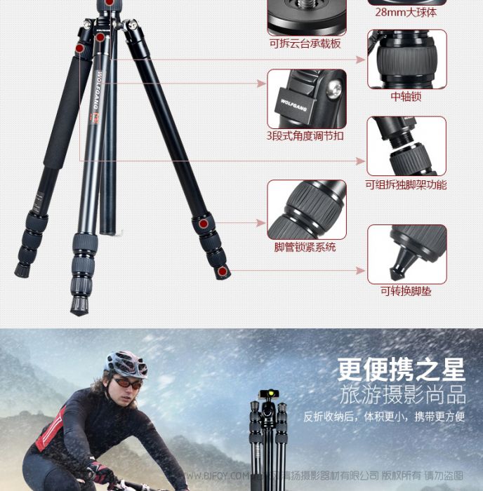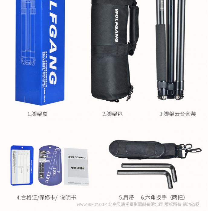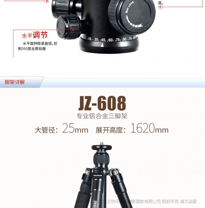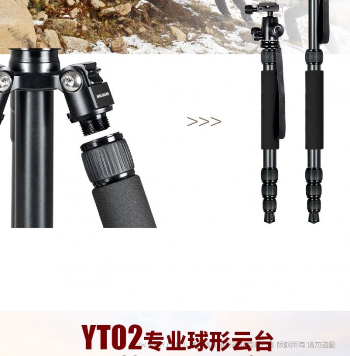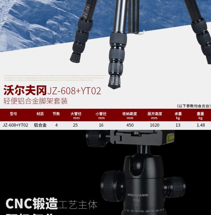 沃尔夫冈 wolfgang JZ-608+YT02 三脚架 铝合金 材质 12kg 承重 适合 单反加大三元配重 微单同样使用 索尼A7M3 A7R3 GM镜头