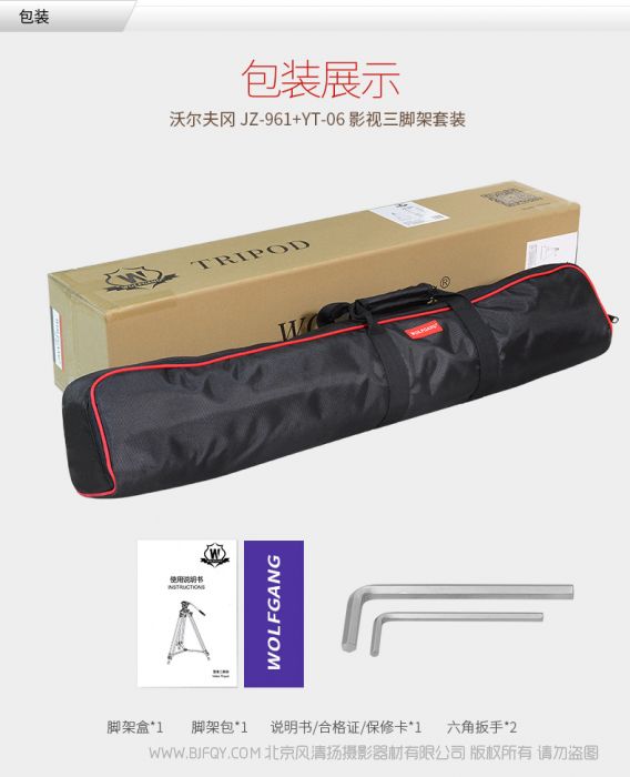 原厂标配:三脚架套装1 脚架包1 说明书 1保修卡1合格证1 六角扳手2