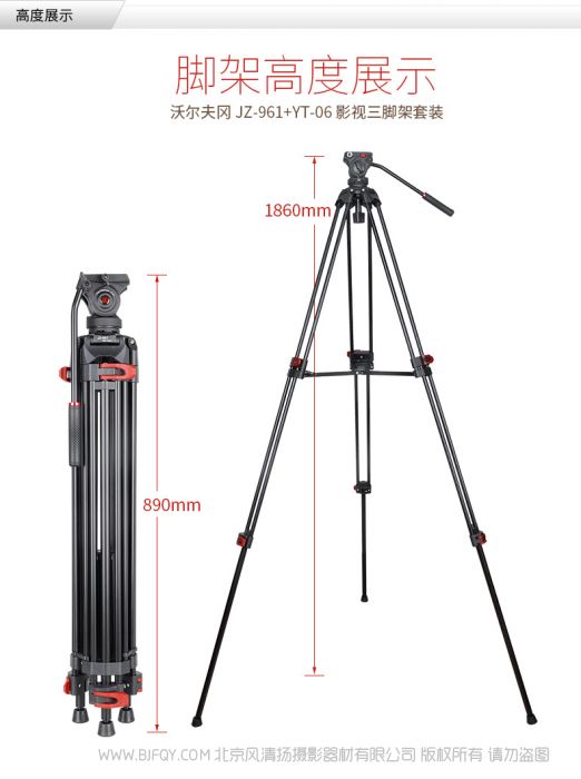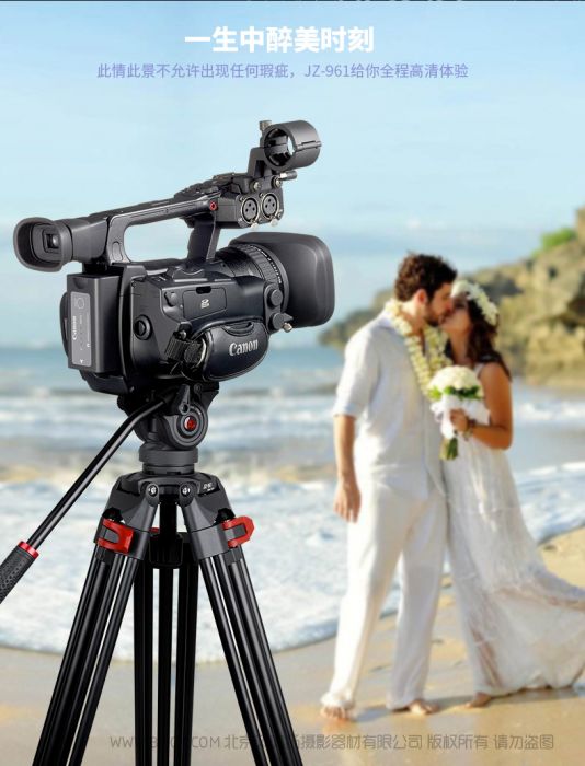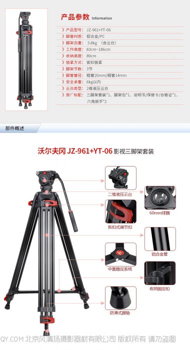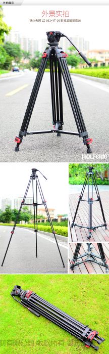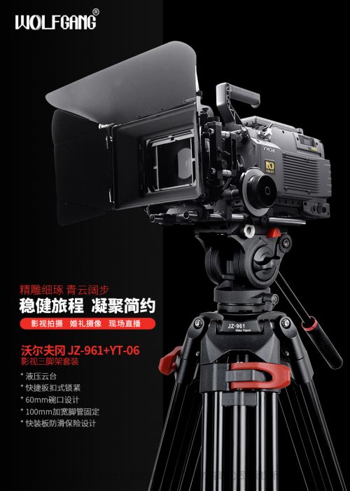 沃尔夫冈 JZ-961+YT06 专业摄像机三脚架 适用索尼 Z280 Z190V AX1E NX3 NX5R NX200 NX100 NX80 Z90