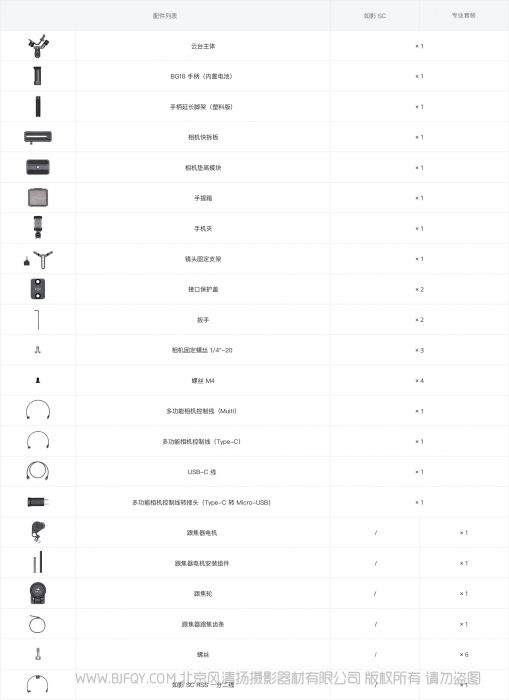 [1] 云台(不含 BG18 手柄)处于收纳姿态时的体积。