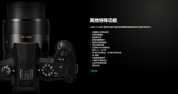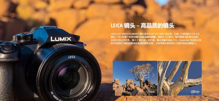 松下 Panasonic DC-FZ10002GK 长焦数码相机 高清 4K 小单反 2019新款 搭配25-400mm LEICA DC镜头,拥有1英寸20MP传感器