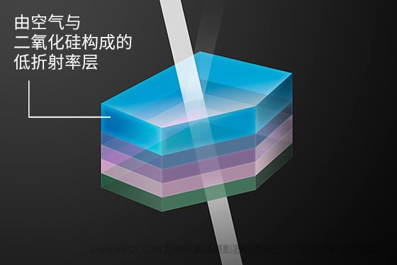 ASC镀膜是佳能研发的镀膜技术,可有效抑制因光反射引起的鬼影和眩光。为抑制镜片和空气边界处的光线反射,通常会在镜片表面实施多层镀膜。ASC是在传统的蒸镀多层镀膜之上形成的一层包含二氧化硅与空气的镀膜。空气的折射率要低于光学玻璃,通过使镀膜中包含一定比例的空气,从而实现了低折射率镀膜。特别是对近乎垂直入射的光线,可有效发挥防反射作用。