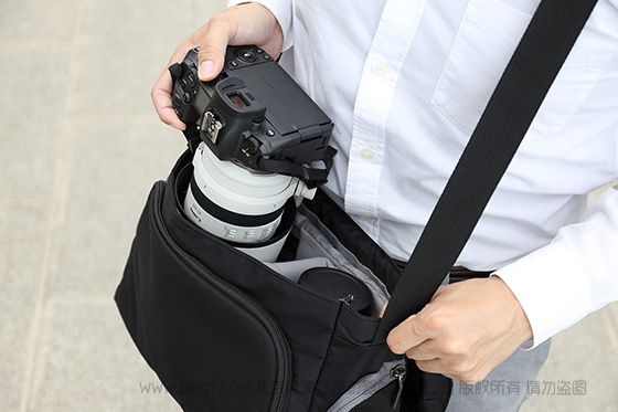 RF70-200mm F2.8 L IS USM 的小身材非常便于携带。安装在EOS R上时也能够轻松放入中小型的相机挎包中,大幅提升了机动性。在偶遇拍摄时机的时候,可直接从挎包中取出安有镜头的相机,迅速进入拍摄状态,不错失决定性瞬间。此外,还能竖着放入大的相机背包中,甚至节省出一支镜头的空间。