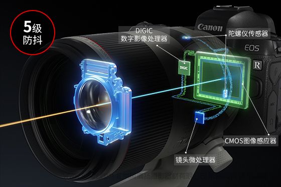 | 手抖动补偿效果 | 5级(基于CIPA测试标准,200mm焦距端,使用EOS R时) |