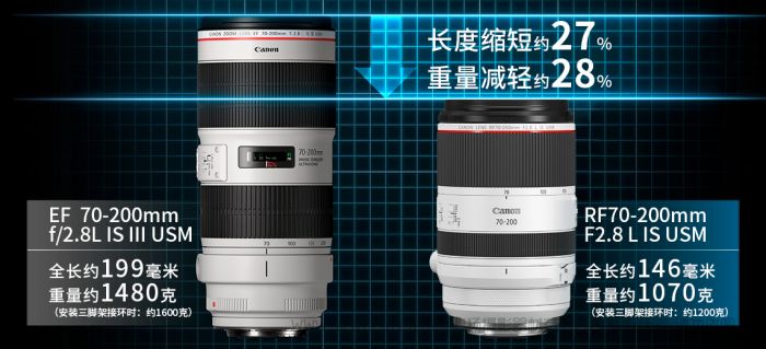 此次的RF70-200mm F2.8 L IS USM覆盖同样的焦段,且小身材与高画质兼备。
