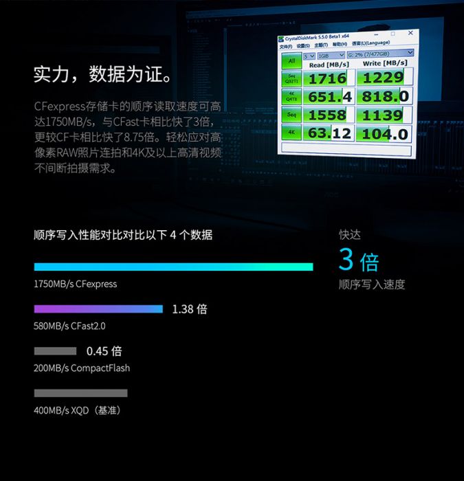 天硕CFE-B存储卡(原厂保证 数据安全)金钻系列CFExpress B卡_2000MB/s 1TB 720GB 880GB