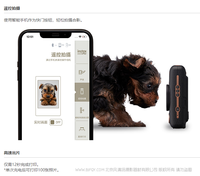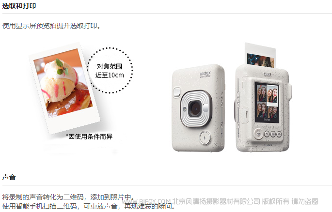 所描述的instax打印仅用于说明目的。