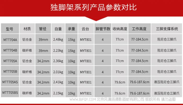 MTT704B适用于婚礼、体育赛事、新闻报道现场等运动跟拍情景,是一款既轻巧稳定,又美观实用的专业独脚架。