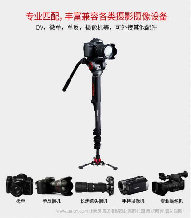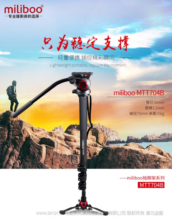 miliboo铁塔系列MTT704B是专门为具有运动型跟拍需求的专业摄影师、摄影发烧友和爱好者打造的,一款稳定、轻巧、便携的专业独脚架。