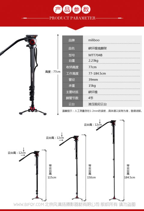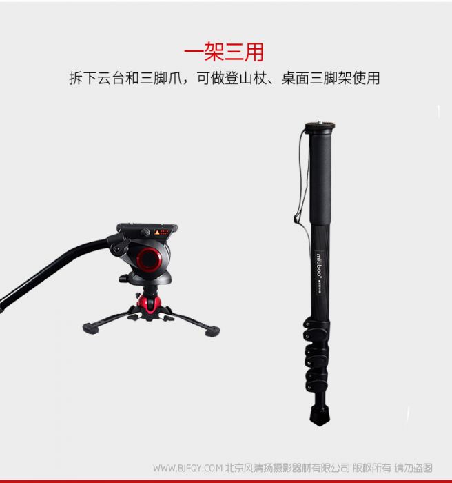 米泊 miliboo铁塔MTT704B碳纤维 独脚架含MYT801云台