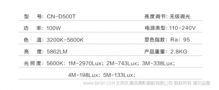 | 型号:CN-D500T | 亮度调节:无级调光 |