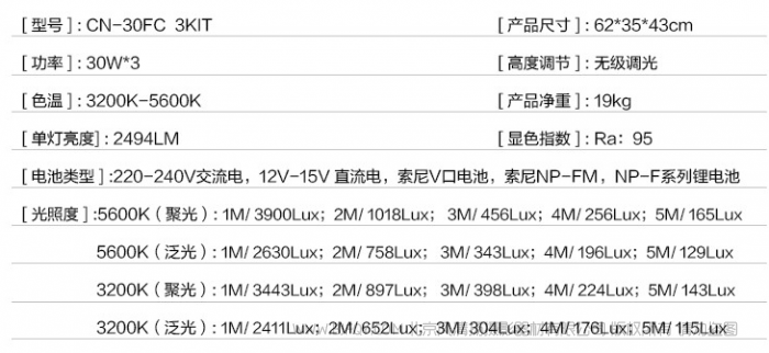 南光 南冠 NANGUANG CN-30FC套装 双色温 三灯套装 新闻采访纪实 面部高亮