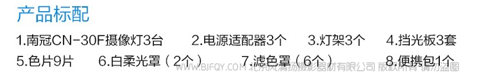 | 1.南冠 CN-30F 摄像灯3台 | 2.电源适配器3个 |