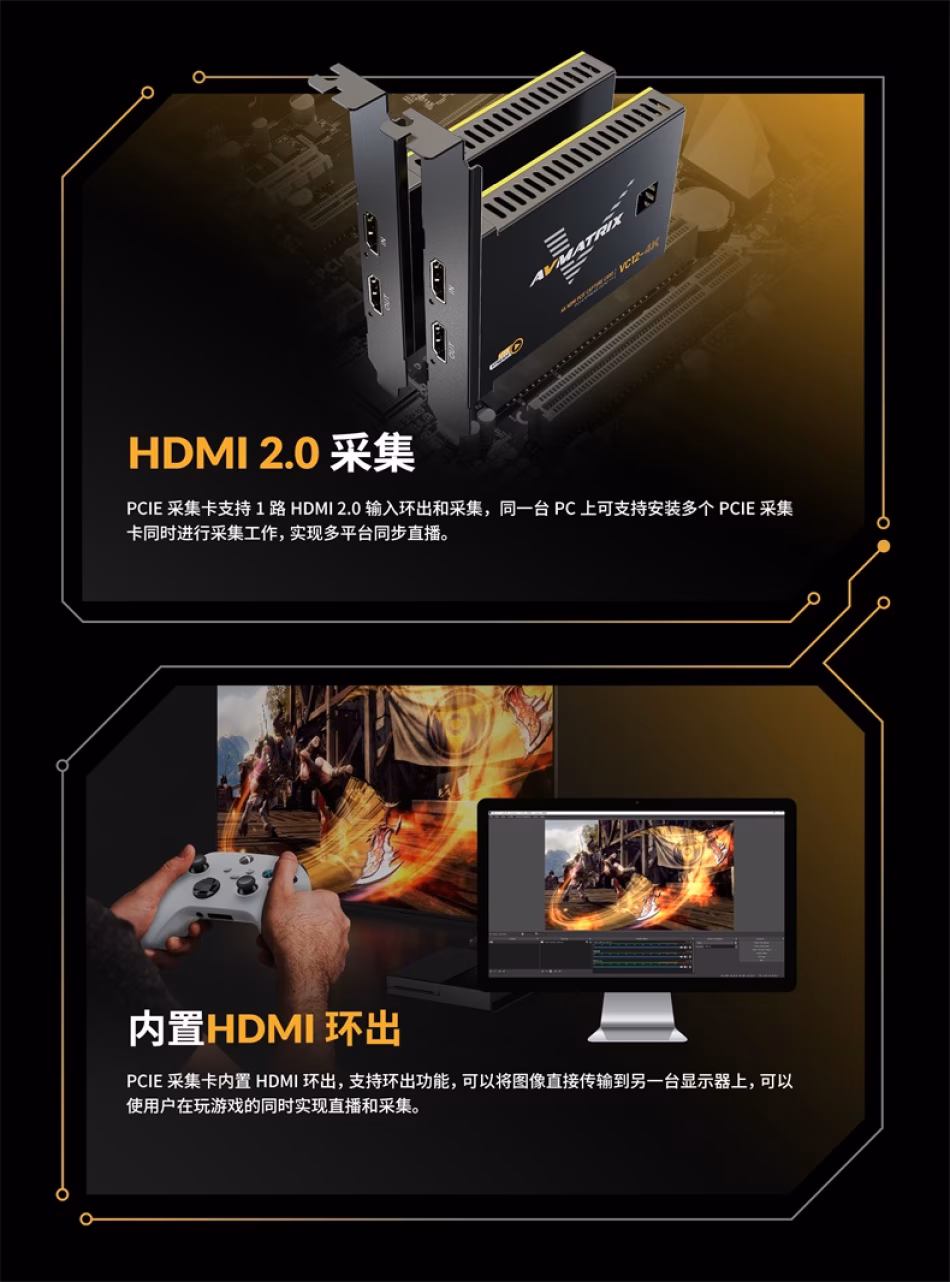 迈拓斯 AVMATRIX VC12-4K丨4K HDMI PCIE 采集卡 内置采集卡