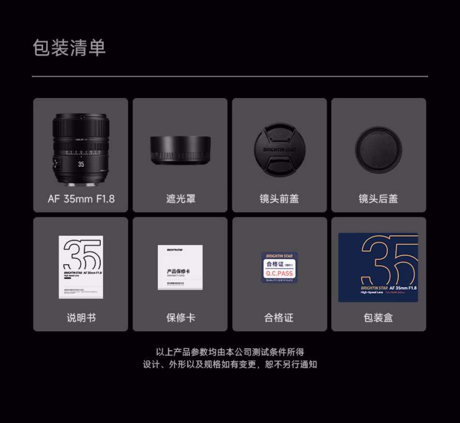 BrightnStar 星曜 星耀 AF 35mm F1.8 全画幅 自动对焦镜头 E卡口 Z卡口